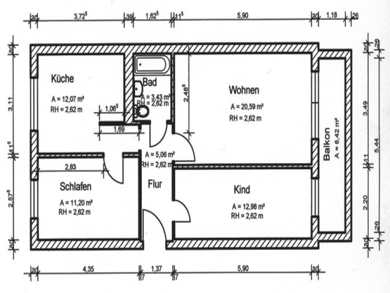 | 2,5 Zimmer | 3. OG rechts | 59,20m² |